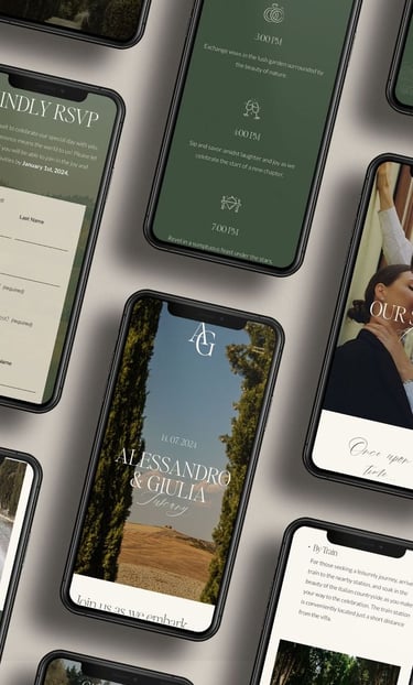 Creamos invitaciones digitales interactivas en formato página web para eventos, donde las personas pueden ver toda la información, confirmar asistencia y guardar los detalles del evento.